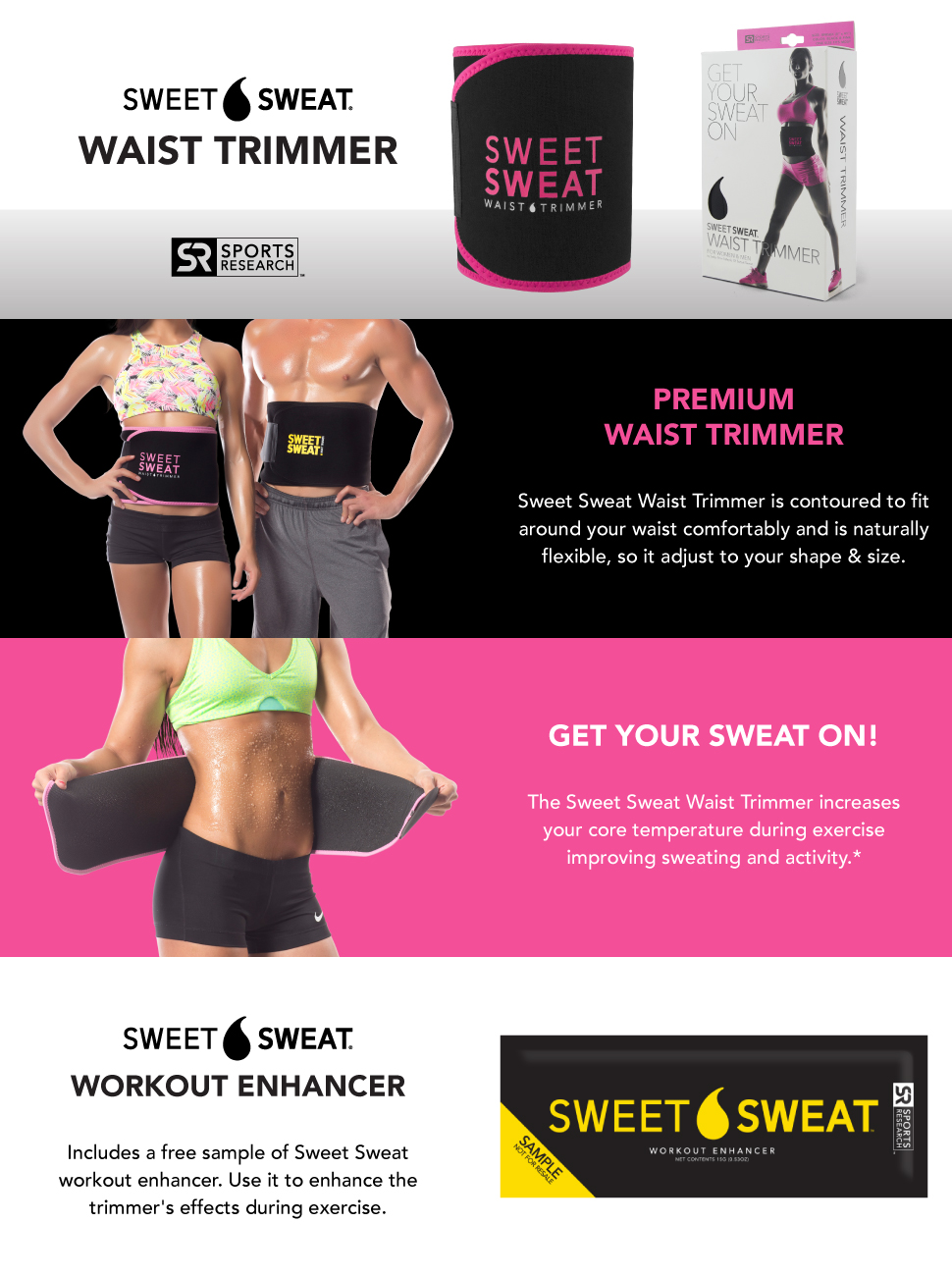 Sweet Sweat Waist Trimmer . This durable, lightweight, and flexible waist trimmer allows for a wide range of movements while providing therapeutic heat compression to the midsection and back Be the first to know about new products, exclusive offers, and much more.